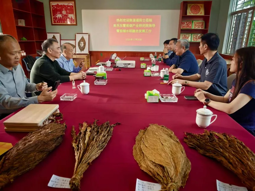为精准把握雪茄产业发展方向、破解技术瓶颈、拓展雪茄产业融合路径,2025年11月24日,沈阳农业大学陈温福院士携孟军教授、王海龙教授等人一行,在烟草行业学科带头人、河南农业大学烟草学院刘国顺教授、海南南繁院刘国彦主任的陪同下,莅临乐东雪茄烟产业研究院开展专项调研与技术指导,为乐东雪茄烟产业高质量发展注入强劲智力支撑。