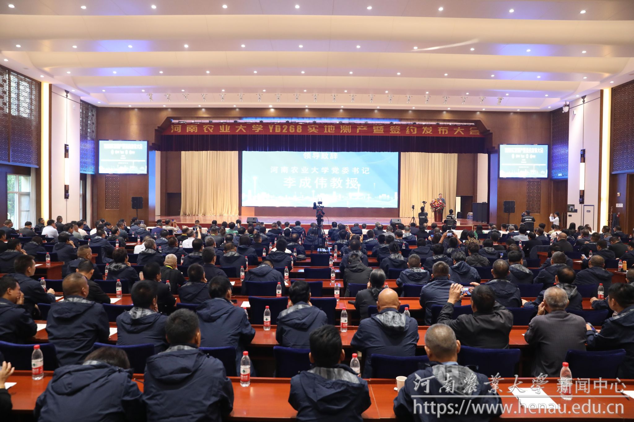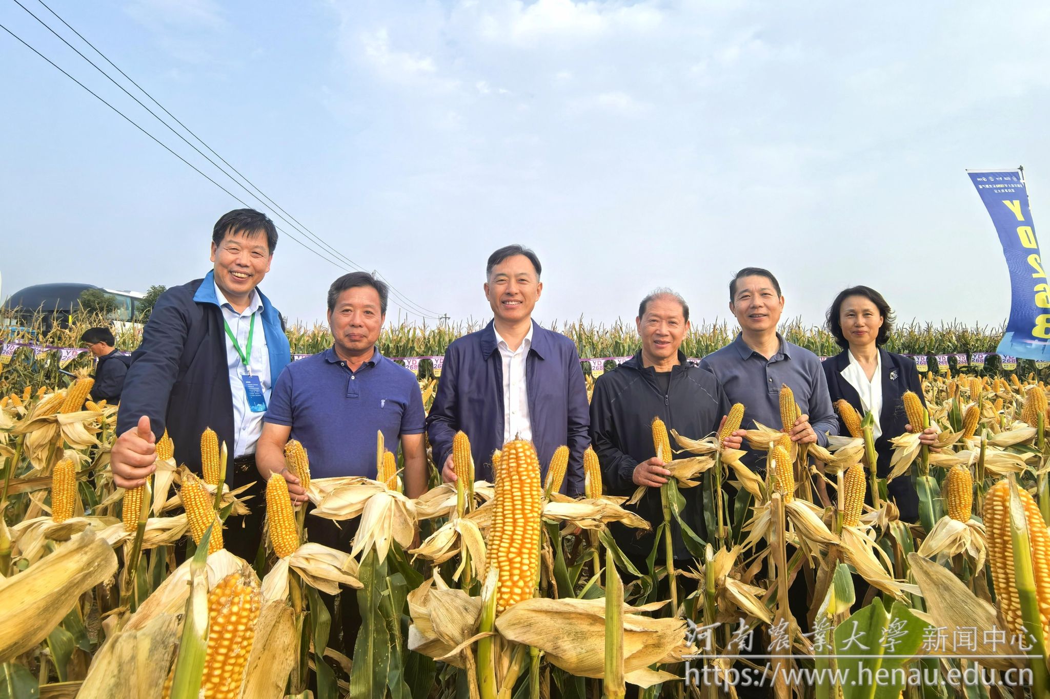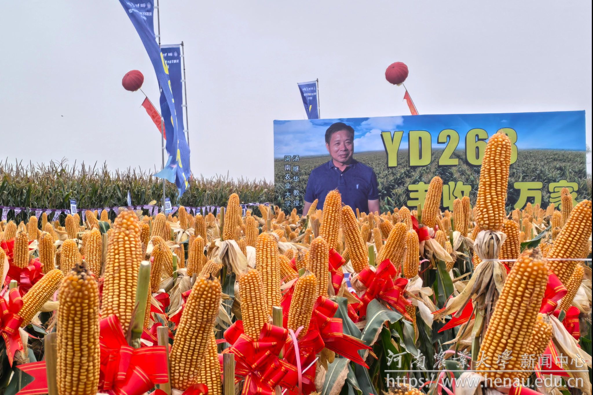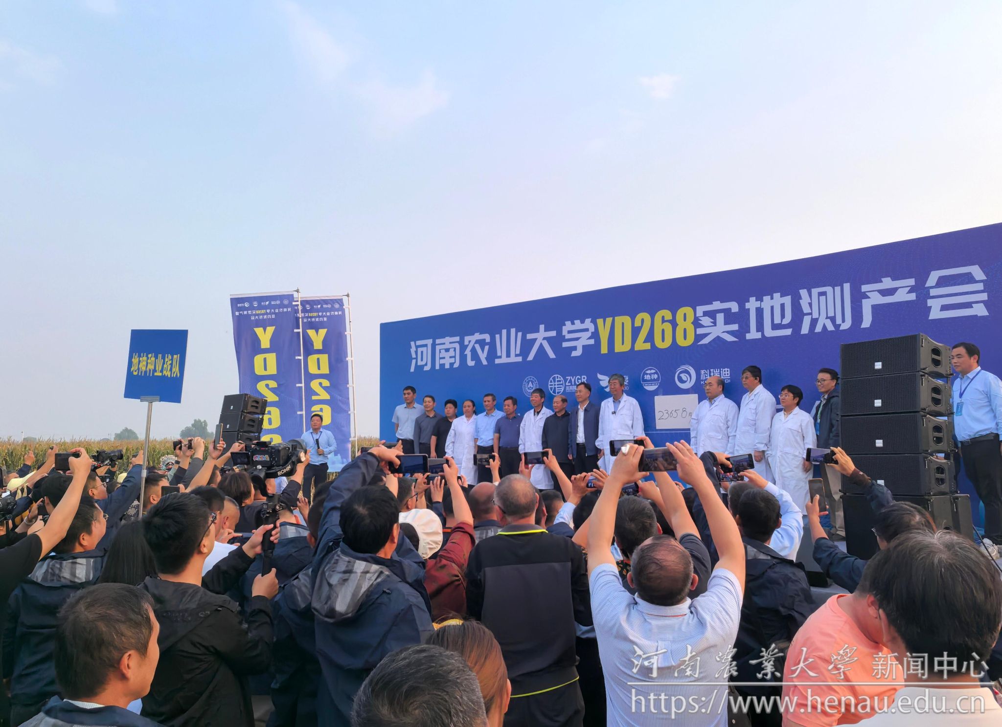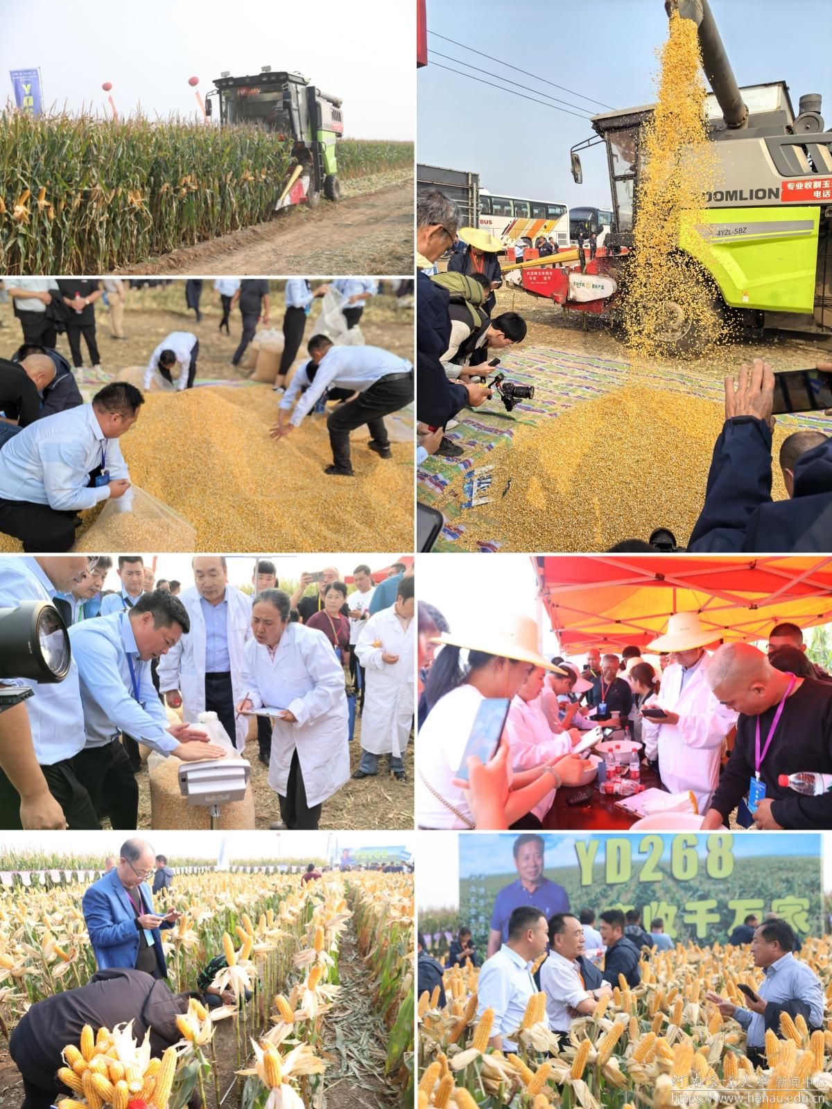 本网讯(记者 周红飞 黄璞 图片 秦晓璐 裴辉)金秋时节,正值喜迎丰收和播种希望之时。10月9日,河南农业大学选育的玉米新品种YD268实地测产观摩会在素有“豫北粮仓”之称的河南省鹤壁市举行。河南农业大学校党委书记李成伟,原校长介晓磊,学术副校长、农学院院长王道文,学术副校长、YD268育种团队负责人汤继华出席活动。学校党委办公室、党委宣传部、社会服务处、农学院负责人,YD268育种团队成员,河北兆育种业集团有限公司、北京丰度高科种业有限公司、河南黄泛区地神种业有限公司、河南慧博科瑞迪农业科技有限公司主要负责人,以及来自黄淮海玉米主产区8个省区的种子经销商和种粮大户400余名汇聚在此,共同见证YD268的机收籽粒现场测产。